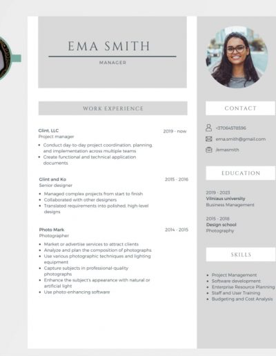 If you want to stand out even more and make an unforgettable impression on your employer, we offer Premium class CV designs that are created using attractive graphic design elements.